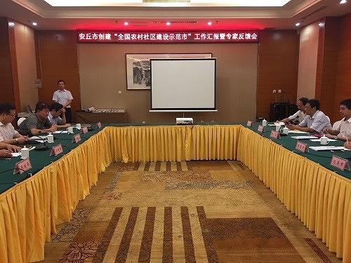 实地考察之后,专家组一行在新东方酒店会议中心参加了安丘市创建“全国农村社区建设示范市”的工作汇报暨专家反馈会,安丘市委副书记、市长杜建华,市委常委、副市长孙晓菲,市民政局局长张汉文,以及各乡镇(街道)负责人参与了此次会议。会上,与会人员观看了安丘市示范社区创建专题片,安丘市委副书记、市长杜建华就示范市创建的基本情况、主要做法、工作成效,向专家组做了详细汇报。专家组对安丘市全国农村社区建设示范创建工作给予肯定,分别就安丘市创建工作进行了精彩点评并提出中肯建议。童潇副教授指出安丘市农村社区示范创建未来可进一步在制度总结提炼、特色突出上下功夫。陈荣卓教授认为安丘市作为多村一社区的建设典型,呈现出阵地建设标准化、服务发展多元化、制度建设规范化、组织建设联动化的特点,并就安丘市示范社区创建工作中的问题进一步从社区特色凸显、社会服务融入、管理机制健全等角度提出了意见建议和思考方向。省民政厅基政处调研员刘兴宝主持会议,并做总结性发言,在感谢民政部专家组对安丘市全国农村社区建设示范市创建工作给予帮助和支持的同时表示下一步将继续努力推动农村社区建设迈出新步伐、迈上新台阶。